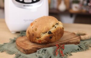 - Desligue o liquidificador e acrescente o fermento e frutas, misture com uma espátula, despeje em uma forma untada e enfarinhada.