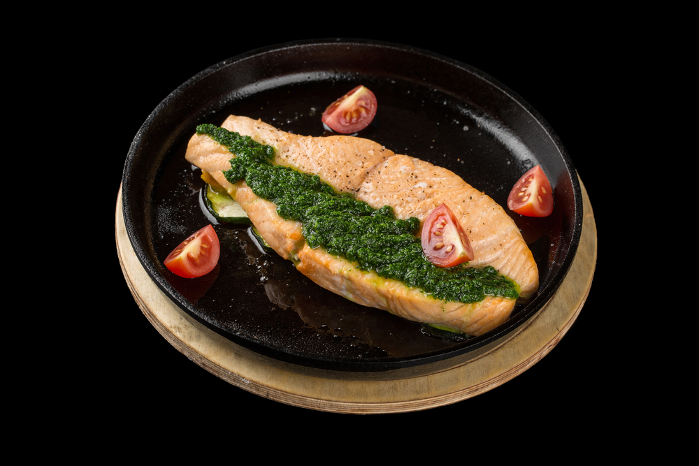 - Coloque o molho pesto sobre os peitos de frango temperados, garantindo que fiquem bem cobertos pela mistura.