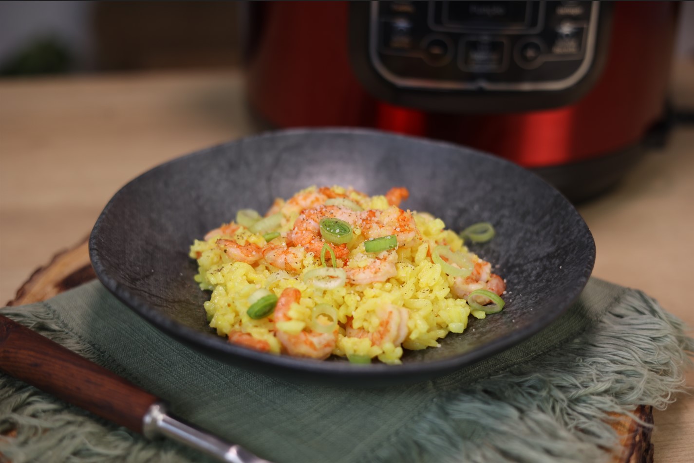 - Junte o caldo de legumes, tampe a panela e coloque a válvula em pressurizar.